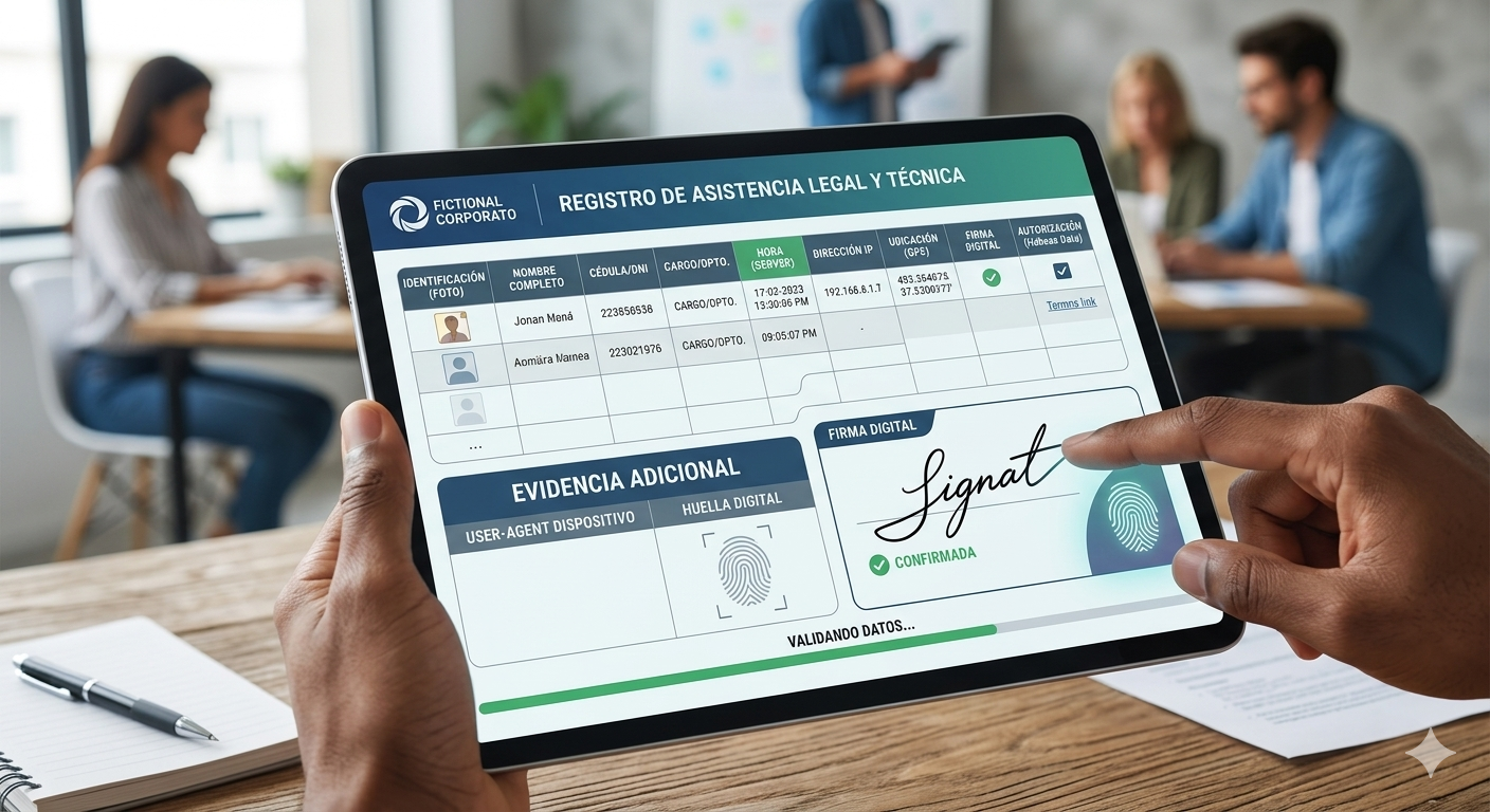 Un listado en papel o un formulario genérico no tienen fecha verificable, ni IP, ni firma con validez legal. Si te auditan, no es suficiente.